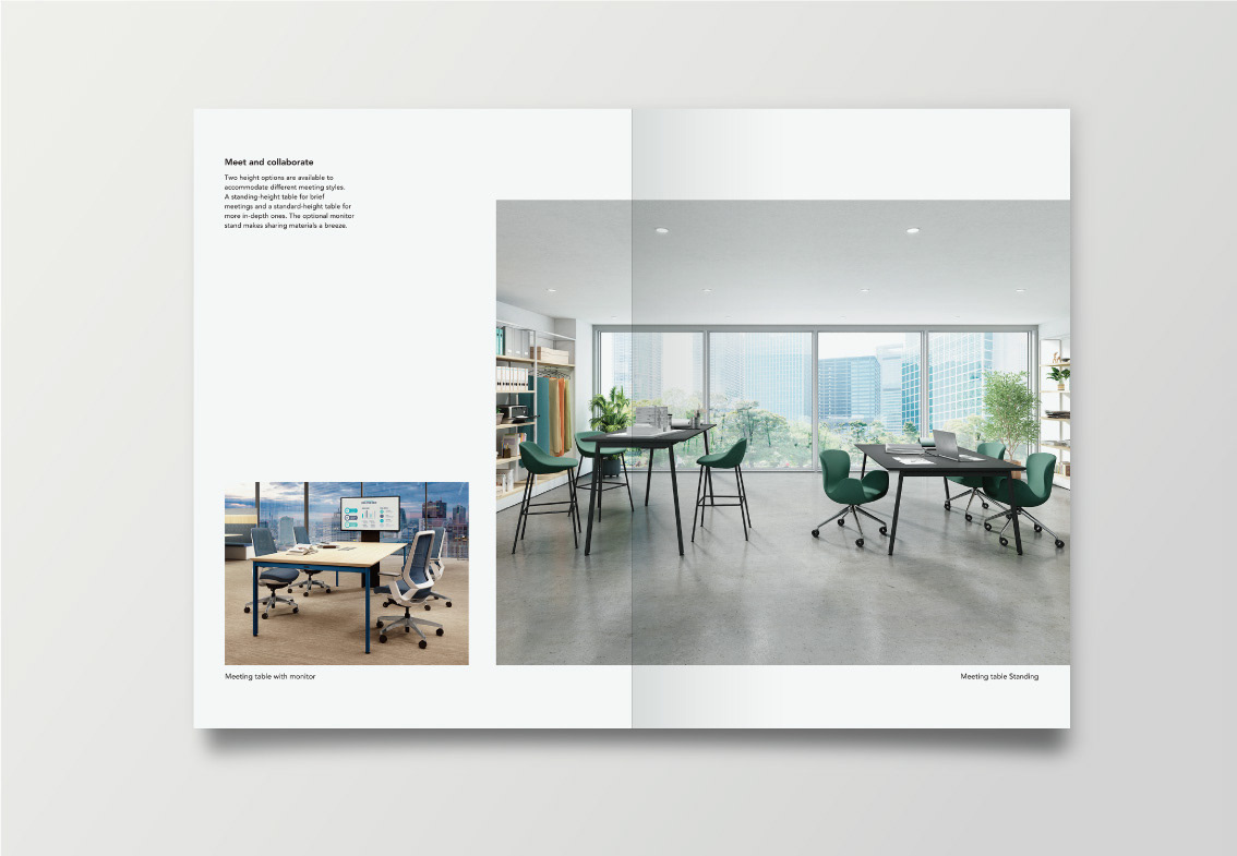 アジア向け展示会用の英文オフィスカタログのデザインを担当しました。